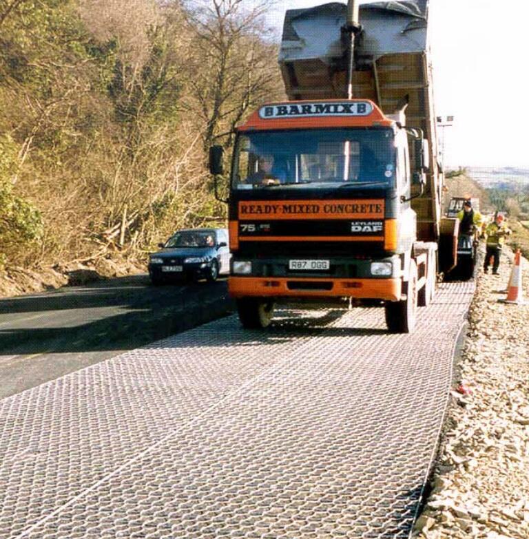 為了便于施工,卸貨時(shí)每隔25m-50m卸下一卷.就可將路面加筋網(wǎng)從卷的頂端而非底端展開.這樣使網(wǎng)子盡可能與公路表面接觸.接下來(lái)用輪胎式壓路機(jī)將網(wǎng)子軋平.這樣至少來(lái)回軋兩圈(4次),使網(wǎng)子與公路表層連得更緊.在轉(zhuǎn)彎處網(wǎng)子卷起,不平是正常的,由于石籠網(wǎng)具有柔韌性,路面加筋網(wǎng)在一定范圍內(nèi)可以拉成需要的形狀,并保持其堅(jiān)固性.